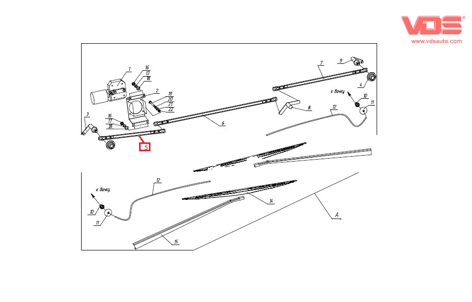Тяга трапеції склоочисника права БОГДАН А-091/А-092, Ataman Євро-3/Євро-4/Євро-5